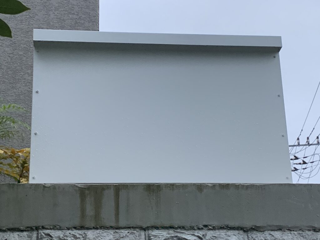塀の上の自立看板の方も看板自体は設置されているのでそこに上記と同仕様の塩ビシートを